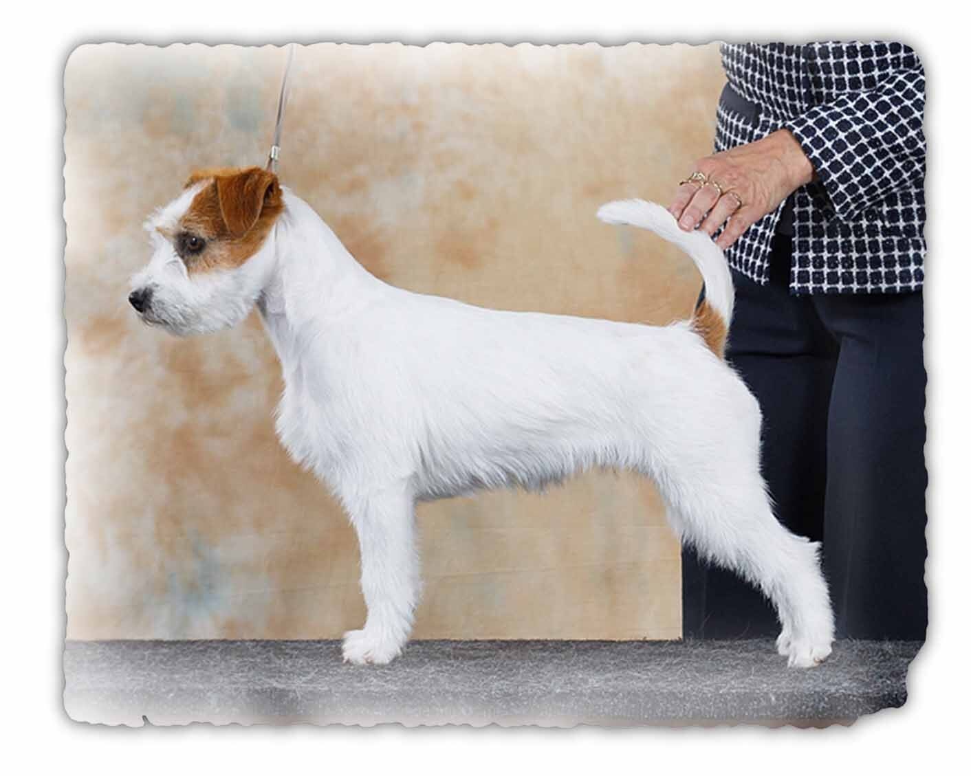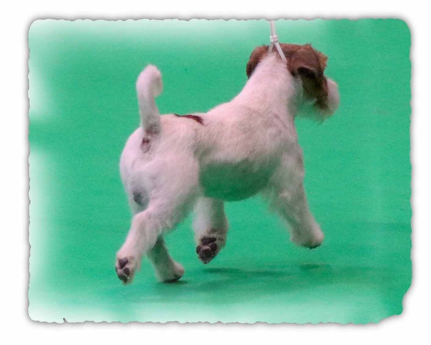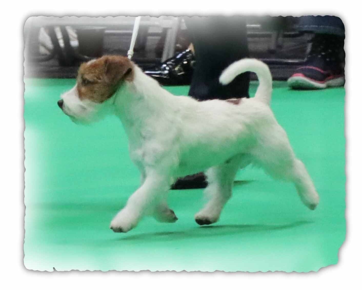 1st -Mignano Fricker & Fricker- Calavey’s Double Oh Seven. Upstanding young male. Correct head, with flat skull, with strong muzzle. Almond shaped dark eye. Correct scissor bite. Used ears well. Strong neck and good layback of shoulder. Strong muscular hindquarters. High set tail. Moved with power and drive. BOB & Terrier Group 2